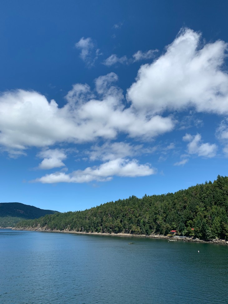 C and I (different C from NoLa trip) took a (fancy) B.C. Ferry from Tsawwassen. We saw seals and bald eagles, blue skies dotted with clouds, and forested hills.
