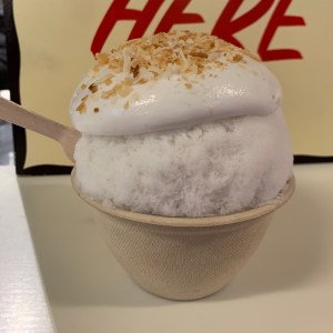 We walked to shave ice (which I learned is a chain just now) – the triple coconut was good, but I didn’t finish it (they only sell one size). I don’t intend to return. It is situated in a plastic-y hipster corridor of sorts- everything looked like it would be cute/good and then something was off once you examined it. For instance, vertical planters of succulents – so cute until you noticed they were plastic. A print shop with terrible designs/or at least just not my style, and the most unfriendly cashier ever. Etc.